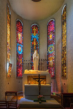 | Dieses Foto zeigt das im digitalen Kulturgüterverzeichnis der Gemeinde Linz (Österreich) unter der Nummer 585 ( commons , de ) aufgeführte Objekt. | Eigenes Werk | Isiwal | Datei:Linz Urfahr Pfarrkirche Christus König Friedenskirche Friedenskapelle-3618.jpg | |