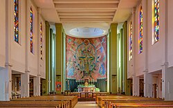 | Dieses Foto zeigt das im digitalen Kulturgüterverzeichnis der Gemeinde Linz (Österreich) unter der Nummer 585 ( commons , de ) aufgeführte Objekt. | Eigenes Werk | Isiwal | Datei:Linz Urfahr Pfarrkirche Christus König Friedenskirche Kirchenschiff Altar-3608.jpg |