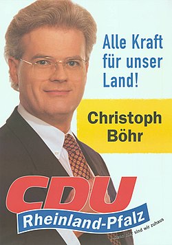Christoph Böhr, Publizist und Politiker 2005 | Christoph Böhr / CDU Rheinland-Pfalz | Christoph Böhr / CDU Rheinland-Pfalz | Datei:Christoph Böhr.jpg | |