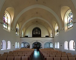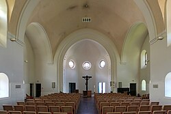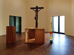 Bei der Umgestaltung 2006 wurde der Raumeindruck der Kirche stark verändert. Die Apsismauer wurde mit zwei großen Türöffnungen versehen, das Gestühl wurde entfernt und durch eine mobile Bestuhlung ersetzt. Ebenso entfernt wurden die Stufen im Presbyterium sowie Altar und Kanzel. Das Kruzifix wurde versetzt. Die massiven Eingriffe in die Bausubstanz und die Einrichtung mussten vom Denkmalamt toleriert werden, da zwingende liturgische Gründe vorgebracht wurden.[1]