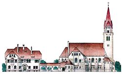 | Entwurf für Christuskirche mit Pfarrhaus in Innsbruck | Die Brücke, Gemeindezeitung der evangelischen Pfarrgemeinden Innsbruck und Umgebung, Nr. 24, Oktober 2006, S.6 | Clemens Kattner (1871-1945), Gustav Knell (1871-1931) | Datei:Christuskirche Innsbruck Entwurf.jpg | |