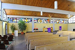 | Presbyterium der Evangelischen Christuskirche in der Auer-von-Welsbach-Straße von Welzenegg, X. Bezirk „Sankt Peter“ der Landeshauptstadt Klagenfurt am Wörthersee , Kärnten / Österreich / EU | Eigenes Werk | Johann Jaritz | Datei:Klagenfurt Welzenegg Auer-von-Welsbach-Strasse evangelische Christuskirche Presbyterium 12122012 244.jpg |