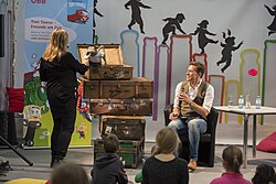| Claudia Skopal mit Rolf Rüdiger bei einer Lesung auf der Buch Wien 2015 | Eigenes Werk | Martin Skopal | Datei:Claudia Skopal schüttelt Rolf Rüdiger die Hand.jpg | |
