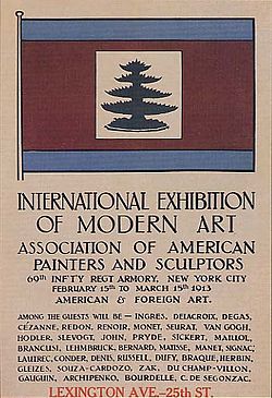 | Plakat zur New Yorker Kunstausstellung Armory Show im Februar/März 1913 | Transferred from en.wikipedia (all following user names refer to en.wikipedia): 2005-05-03 06:28 Sparkit 340×497×8 (53059 bytes) Armory Show poster. 1913. PD-art Category:Images of art | Original uploader was Sparkit at en.wikipedia | Datei:ArmoryShow poster.jpg | |