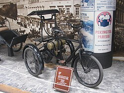 | Csonka motorised three-wheeler from 1900. The engine is four-stroke, 260-ccm single-cylinder type and its maximum output is 1.7 kW (2.3 hp). The top speed of the vehicle is 25 km/h. | Eigenes Werk | Gwafton | Datei:Csonka three-wheeler.JPG | |