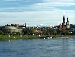 Brucknerhaus | Eigenes Werk | Axel Marquard | Datei:Brucknerhaus mit Alpenblick.jpg | |