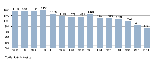 - ↑ Bevölkerungsentwicklung der Statistik Austria (PDF; 0,3 MB)