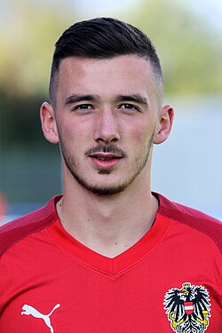 Teamcamp der österreichischen U21-Fußballnationalmannschaft von 6. bis 13. October 2019 in Bad Erlach – Das Foto zeigt Dario Maresic (Stade de Reims). | Eigenes Werk | -- Steindy ( Diskussion ) 18:30, 13 October 2019 (UTC) | Datei:Austria national under-21 football team - Teamcamp October 2019 (28).jpg | |
