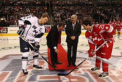 | Puck drop: Boyd Kane (left) & Darren Haydar (right), American Hockey League (AHL) All-Star GameTaken on January 30, 2012 using a Canon EOS-1D Mark IV. Boardwalk Hall - Atlantic City, NJ | AB5E2724a Uploaded by Dolovis | TheAHL | Datei:Boyd Kane and Darren Haydar AHL All-Star Classic 2012.jpg | |