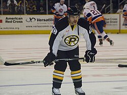 | David LaliberteProvidence Bruins vs. Bridgeport Sound Tigers.American Hockey League (AHL)Taken by Sarah Connors on March 11, 2011 P-Bruins won in a shootout, 4-3. This photo also appears in Sarah Connors' Flickr Set "Providence vs. Bridgeport 3/12/11" (Set: 96) | ERI_5544 Uploaded by Dolovis | Sarah Connors | Datei:David Laliberté 2011-03-11.jpg | |