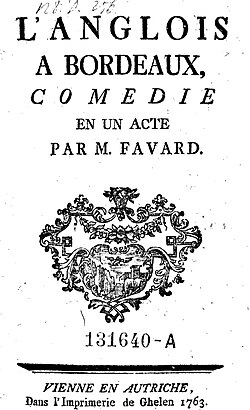 Titelblatt der Ausgabe Wien 1763 | https://books.google.de/books?id=UDZMAAAAcAAJ&hl=de&source=gbs_navlinks_s | Google Books | Datei:L'Anglois à Bordeaux, Wien 1763.jpg |
