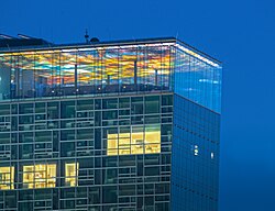 Uniqa-Tower Wien, Jean Nouvel, Restaurant mit Deckenlichtinstallation von Pipilotti Rist, Le Loft Bar & Lounge | Eigenes Werk | Hubertl | Datei:Uniqa Tower Jean Nouvel - Blue hour - Le Loft Restaurant 18th Floor 8117.jpg | |