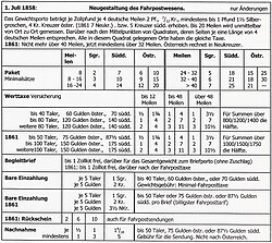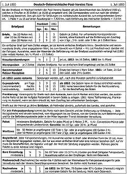 | Deutsch-Österreichischer-Post-Verein, Tarife, 1850; eigenbau2006 W.Steven 12:11, 21. Nov. 2006 (CET) | Übertragen aus de.wikipedia nach Commons durch Tirkfl . | Der ursprünglich hochladende Benutzer war Werner Steven in der Wikipedia auf Deutsch | Datei:DOPV50.jpg | |