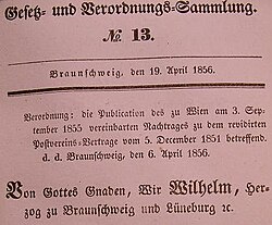 - Am 1. Januar 1852 traten ferner die Großherzoglich Luxemburgische Regierung, das Herzogtum Braunschweig, die Freie Hansestadt Lübeck und die Großherzoglich Oldenburgische Regierung dem Postverein bei.