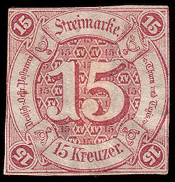| Thurn und Taxis stamp, 1859, 15 kreuzer | Personal collection | Scanned and processed by Nickpo | Datei:Thurnundtaxisstamp.jpg | |