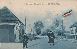 | The danish-german border at Hoekkelbjerg north of Christiansfeld before 1920. The flag from Schleswig-Holstein is used. | Old post card | Autor/-in unbekannt Unknown author | Datei:Danish-German border before 1920.jpg | |