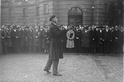 | Es folgt die historische Originalbeschreibung , die das Bundesarchiv aus dokumentarischen Gründen übernommen hat. Diese kann allerdings fehlerhaft, tendenziös, überholt oder politisch extrem sein. Eine machtvolle Kundgebung der deutschen Studentenschaft gegen die Schandtaten Polens vor der Universität in Berlin ! Der Sprecher der Studenten schildert in einer markanten Rede die Leiden der deutschen Brüder im Osten. | Dieses Bild wurde im Rahmen einer Kooperation zwischen dem deutschen Bundesarchiv und Wikimedia Deutschland aus dem deutschen Bundesarchiv für Wikimedia Commons zur Verfügung gestellt. Das deutsche Bundesarchiv gewährleistet eine authentische Bildüberlieferung nur durch die Originale (Negative und/oder Positive), bzw. die Digitalisate der Originale im Rahmen des Digitalen Bildarchivs . | Unbekannt Unknown | Datei:Bundesarchiv Bild 102-10791, Berlin, Kundgebung vor der Universität.jpg | |