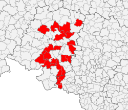 Die deutsche Minderheit in Polen ist eine seit 1991 anerkannte nationale Minderheit in Polen, deren Rechte durch die polnische Verfassung garantiert sind.[1] Das Siedlungsgebiet dieser Deutschen liegt überwiegend in Oberschlesien zwischen den Städten Opole (deutsch Oppeln, schlesisch Uppeln) und Katowice (deutsch Kattowitz, schlonsakisch Katowicy). Dort stellen sie in mehreren Gemeinden 20 bis 50 Prozent der Bevölkerung, das Zentrum mit den meisten Angehörigen der Minderheit liegt in der Woiwodschaft Opole. Die deutsche Sprache ist dort und in der Woiwodschaft Schlesien verbreitet, allerdings ist nirgendwo in Polen Deutsch eine Sprache der Alltagskommunikation.[2] Die überwiegende Haus- oder Familiensprache (Umgangssprache) der deutschen Minderheit in Oberschlesien ist Schlesisch (polnischer Dialekt)[3] oder Schlesisch (deutscher Dialekt).