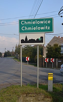 | Chmielowice - Chmiellowitz - Polnisch-deutsches Ortsschild mit einem Fehler | Eigenes Werk | Pudelek | Datei:Chmielowice - Chmiellowitz - Polnisch-deutsches Ortsschild mit Fehler.JPG |