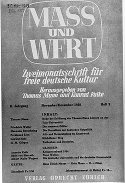 Zweimonatsschrift für freie deutsche Kultur. September 1937 bis Oktober 1940. Zürich. Hrsg. Thomas Mann u. Konrad Falke. Red. Zuerst Ferdinand Lion, ab November 1939 Golo Mann u. Emil Oprecht