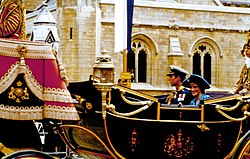 Königin Elisabeth II. bezeichnete in ihrer Rede anlässlich ihres 40. Kronjubiläums am 24. November das Jahr 1992 als ein annus horribilis. Am 9. Dezember 1992 verkündete Premierminister John Major im Unterhaus die offizielle Trennung von Diana und Charles mit den Worten, die Eheleute hätten nicht die Absicht, sich scheiden zu lassen, und würden weiterhin in vollem Umfang an der Erziehung ihrer Söhne mitwirken.[59] Er fügte außerdem hinzu, dass die Trennung des Prinzenpaares keine verfassungsmäßigen Auswirkungen habe, eine Aussage, die von manchen Mitgliedern im Unterhaus mit Ungläubigkeit betrachtet wurde. Die Vorstellung, dass Diana, die ihre Abneigung gegenüber Charles nun nicht mehr verbarg, eines Tages zur Königin gekrönt werden könnte, war für sie unerträglich. Im Januar 1993 beschloss Diana, fortan auf Polizeischutz zu verzichten, sofern sie nicht mit ihren Söhnen auf Reisen war.[60]