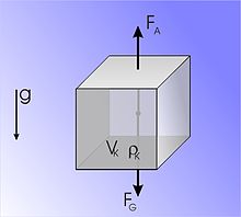 mit der Schwerebeschleunigung misst eine Waage für den in Fluid eingetauchten Körper die Kraft
