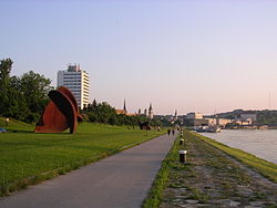 | Dieses Foto zeigt das im digitalen Kulturgüterverzeichnis der Gemeinde Linz (Österreich) unter der Nummer 1318 ( commons , de ) aufgeführte Objekt. | Eigenes Werk | Haeferl | Datei:Linz - Donaulände - Strömung (Erwin Reiter 1977) mit Brucknerhaus und Arcotel.jpg |