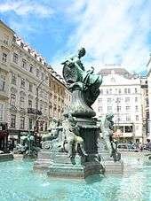 | Der Donnerbrunnen , eigentlich Providentia-Brunnen, am Neuen Markt in der österreichischen Bundeshauptstadt Wien . Georg Raphael Donner errichtete ihn in den Jahren von 1737 bis 1739. Im Zentrum die Figur der Providentia, eine Allegorie der Voraussicht, mit 4 Putten. Am Brunnenrand befinden sich 4 Flussfiguren, die die Flüsse Enns (Fährmann), March (Frau), Traun (junger Fischer) und Ybbs (Quellnymphe) symbolisieren. | Eigenes Werk | C.Stadler/Bwag | Datei:Wien - Donnerbrunnen.JPG |