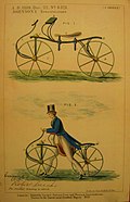 | Baron Charles von Drais patented the hobby or dandy horse in France in 1818. The hobby horse was a forerunner of the bicycle and was introduced into England in 1818 by coachmaker Denis Johnson, who took out the British patent. | http://objectwiki.sciencemuseum.org.uk/wiki/Image:1924-71_Ladies_Hobby_Horse.jpg | Ian.wilkes on http://objectwiki.sciencemuseum.org.uk , and copied to commons by Jarry1250 | Datei:1924-71 Ladies Hobby Horse.jpg | |