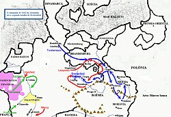 Nach dem Sieg bei Wittstock hatte sich die Lage für Schweden deutlich gebessert. Kurbrandenburg war wieder unter schwedischer Kontrolle und der brandenburgische Kurfürst musste nach Königsberg in Preußen fliehen.[69] Im Frühjahr 1637 drangen die Schweden unter Banér auch in Kursachsen ein. Die Belagerung von Leipzig scheiterte aber, und nachdem sächsische Truppen und die aus Burgund zurückgekehrte kaiserliche Hauptarmee Banér zum Rückzug nach Pommern gezwungen hatten, waren die Schweden wieder in ihrer Küstenbasis eingeschlossen.[70]