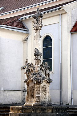 | Pest- und Dreifaltigkeitssäule bei der Pfarrkirche - Deutschkreutz | Eigenes Werk | Steindy ( talk ) 10:45, 10 March 2012 (UTC) | Datei:Deutschkreutz - Dreifaltigkeitssäule bei der Pfarrkirche (01).jpg |