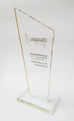 | Pokal des eAwards in der Kategorie "Arbeitsplatz und Organisation" | Eigenes Werk | Tres472 | Datei:EAward.jpg | |