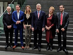 | Detlev Ganten , Eckart von Hirschhausen , Maja Göpel , Gregor Hagedorn , Karen Helen Wiltshire und Volker Quaschning (von links nach rechts) bei der Vorstellung der #Scientists4Future -Stellungnahme am 12. März 2019 in Berlin | Downloads on scientists4future.org | Autor/-in unbekannt Unknown author | Datei:Scientists for Future 2019-03-12 group photograph 02 (cropped).jpg | |