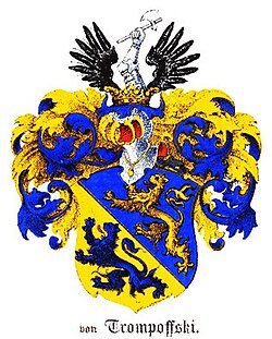 | Familienwappen derer von Trompowsky | Baltisches Wappenbuch. Wappen sämmtlicher, den Ritterschaften von Livland, Estland, Kurland und Oesel zugehöriger Adelsgeschlechter | Adolf Matthias Hildebrandt | Datei:EvT Wappen.jpg | |