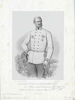 | Eduard Franz von Liechtenstein (1809-1864) Fürst, k. k. Feldmarschallleutnant, Lithographie von August Strixner, 1849 nach Richter. | Eigenes Foto einer Originallithographie der Albertina (Wien) | August Strixner (1820 - 1855) | Datei:Eduard Franz von Liechtenstein Litho.jpg | |