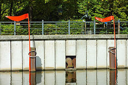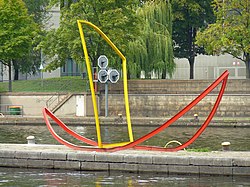 | 'Gegen die Strömung', Installation aus Baustahlträgern von Eduard Habicher aus dem Jahr 2010 an der Spree und der Mühlendammschleuse in Berlin-Mitte. Teil Habichers Wassergalerie 'Der Rote Faden am Hafen' entlang des Spreekanals. | Eigenes Werk | Lotse | Datei:Gegen die Stroemung (Eduard Habicher) - 988-870-(118).jpg | |
