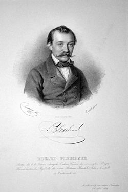 | Eduard Pleschner, Ritter von Eichstett (1813-1864), Industrieller, Präsident der Prager Handelskammer, Gründer der Prager HandelsakademieLithographie von Josef Kriehuber nch einem Gemälde von Engerth, 1856 | Eigenes Foto einer Originallithographie der Albertina (Wien) | Josef Kriehuber (1800 -1876) | Datei:Eduard Pleschner Litho.jpg | |
