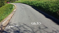 Grenzland-Weinstraße mit Grenzverlauf in der Straßenmitte