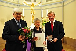 | Verleihung des Verdienstzeichens des Landes Salzburg an Ehrenamtliche der Evangelischen Kirche A. B. durch Landeshauptmann Wilfried Haslauer (rechts). | 1603_epdUschmann_50JahreVergebungsbitte_64 | Evangelische Kirche in Österreich | Datei:Verdienstzeichen Salzburg.jpg |