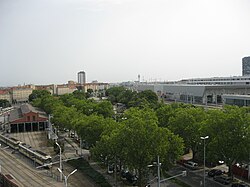 Bahnhofsgelände mit Gleisen, links die Eichenstraße