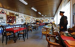 | Einer der Ausstellungsräume im Eisenbahnmuseum in der niederösterreichischen Marktgemeinde Sigmundsherberg. Das Eisenbahnmuseum, auch Waldviertler Eisenbahnmuseum genannt, befindet sich in unmittelbarer Nähe des Bahnhofs von Sigmundsherberg und wurde 1987 eröffnet. Die in das Museum integrierte Remise (Heizhaus) wurde 1880/81 errichtet und 1921 durch eine Drehscheibe ergänzt: 1 . | Eigenes Werk | C.Stadler/Bwag | Datei:Sigmundsherberg - Eisenbahnmuseum, Ausstellungsraum.JPG | |