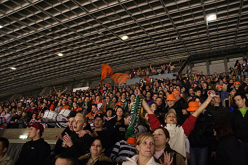 Fans der Graz 99ers im Inneren der Halle auf der Haupttribüne