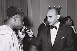 | CAMEROUN PRES. AHMADOU AHIDJO WITH ISRAELI AMB. IN CAMEROUN ELHANAN GAFNI, AT RECEPTION IN THE KING DAVID HOTEL IN REHOVOT. | This is available from National Photo Collection of Israel, Photography dept. Government Press Office ( link ), under the digital ID D799-059 . This tag does not indicate the copyright status of the attached work. A normal copyright tag is still required. See Commons:Licensing for more information. | Moshe Pridan | Datei:Ahmadou Ahidjou with Elhanan Gafni.jpg | |