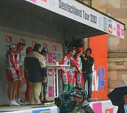 | Teamvorstellung Saarbrücken, Stefan Rucker,Harald Starzengruber,hristian Pfannberger, Jochen Summer, Harald Totschnik, Thomas Rohregger, Wolfgang Murer, Stefan Denifl. | Eigenes Werk Originaltext : selbst fotografiert | Viribus unitis 10:38, 14. Aug. 2007 (CEST) | Datei:ELKteamvorstellungDTOUR07.jpg | |