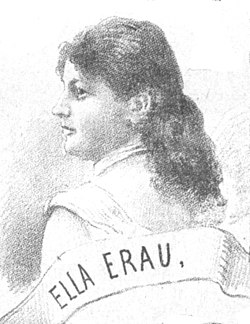 Portrait of Ella Erau (1871-??), Austrian actress. Cropped from a gallery of artists, engaged at "Das Deutsche Volkstheater" in Vienna. | Der Humorist, 5 September 1889 , digitized by the Austrian National Library | Anonym Unknown author | Datei:Ella Erau 1889.jpg | |