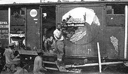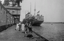 | Americká (původně však německá) loď Mount Vernon - jedna z transportních lodí, jimiž byli přepravování českoslovenští legionáři z přístavu ve Vladivostoku zpět do vlasti. Speciálně tato loď realizovala v roce 1920 v pořadí 20. transport příslušníků československých legií z Vladivostoku (odplutí 13. dubna 1920) do Terstu (připlutí 6. června 1920), při němž bylo přepraveno cca 2990 důstojníků a vojáků (dle jiných pramenů to bylo celkem 3452 osob + 699 německých, maďarských a rakouských zajatců s americkou strážní rotou). | Vaněk, Otakar, ed., Holeček, Vojtěch, ed. a Medek, Rudolf, ed. Za svobodu: obrázková kronika československého revolučního hnutí na Rusi 1914-1920. Kniha 4, díl V, Od Volhy na Urál, magistrála, návrat do vlasti, 1918-1920. Praha: vydavatelstvi "Za svobodu", rok vydání 1929, 900 stran, strana 830. | CZ: Autorem této fotografie je neznámá osoba. EN: Author of this photo is unknown person. | Datei:Cs.Legie.Lod.Mount.Vernon.1920.gif | |