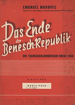 - ↑ Emanuel Moravec: V úloze mouřenína – Československá tragedie 1938. Orbis, Praha 1940, S. 353 (tschechisch, verfügbar online.).