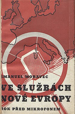 | Titelbaltt des Buches: Ve službách nové Evropy -rok před mikrofonem. Praha: Orbis, 1940. | Národní knihovna České republiky | Emanuel Moravec | Datei:Emanuel Moravec Ve službách nové Evropy.jpg | |