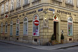 | Apotheke zur Heiligen Johanna. Buchfeldgasse 19 / Florianigasse 13, Wien-Josefstadt. | Eigenes Werk | Funke | Datei:Buchfeldgasse 19 Apotheke.jpg | |