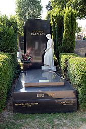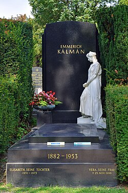 | Ehrenhalber gewidmetes Grab von Emmerich Kálmán auf dem Wiener Zentralfriedhof , Gruppe 31 B, Reihe 12, Nr. 10 | Eigenes Werk | Haeferl | Datei:Wiener Zentralfriedhof - Gruppe 31 B - Emmerich Kálmán.jpg | |
